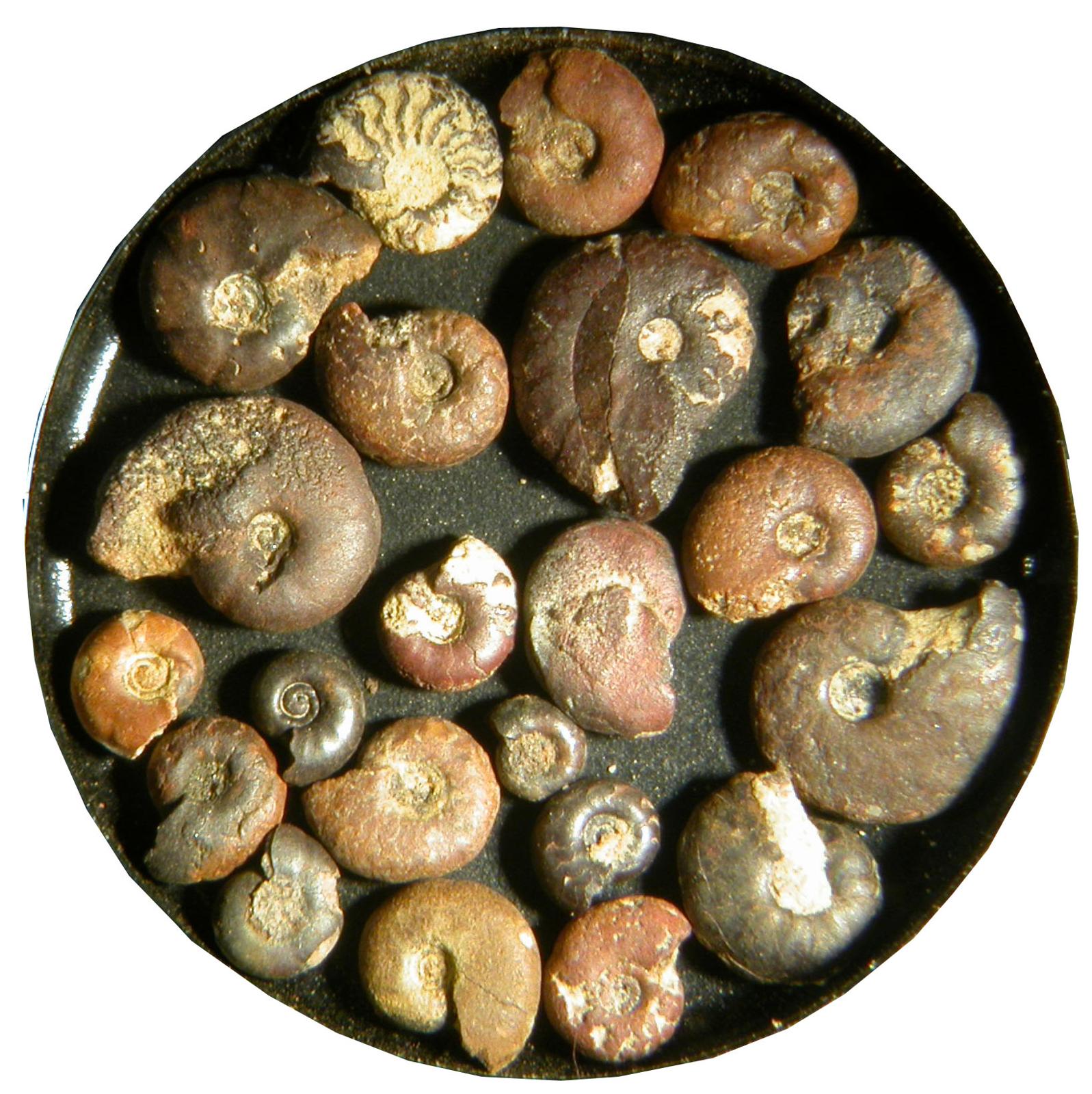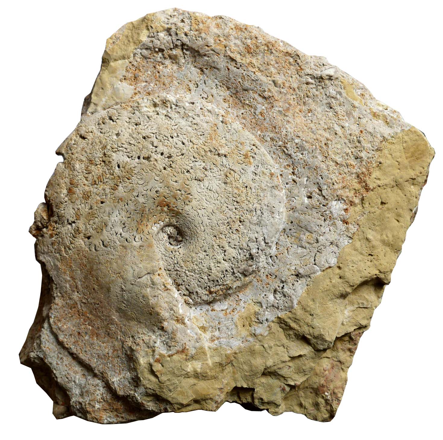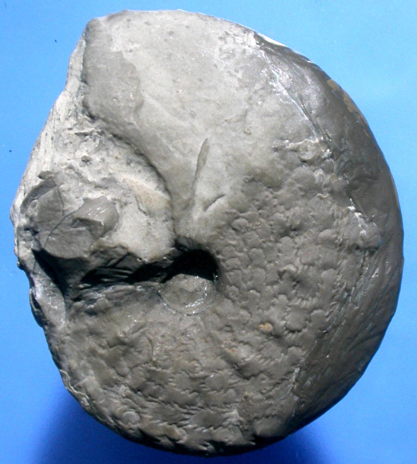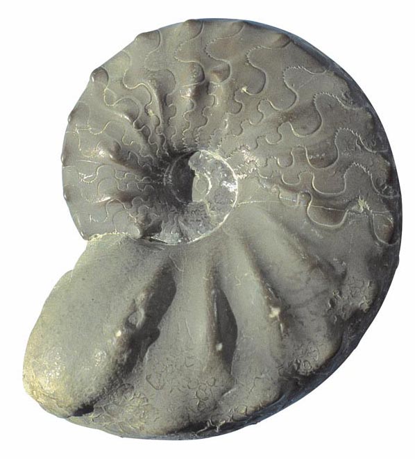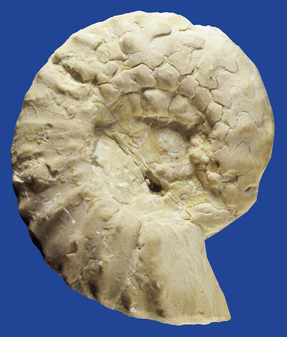 Ceratites nodosus ist das bekannteste Fossil des Muschelkalks. Am „Steinkern“, der zu Stein verfestigten Füllung der ehemaligen Perlmuttschale, erkennt man die Wohnkammer und den zu Lebzeiten des Tieres mit Luft gefüllten, gekammerten Teil des Gehäuses mit den gewellten Lobenlinien der Kammertrennwände.