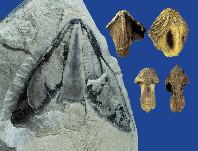 Die bekanntesten Muschelkalkfossilien sind sicher die Ceratiten mit einfach gewellter Lobenlinie, die zu den Ammonoidea gehören. In der Trias erlebten diese schalentragenden Kopffüßer ihre höchste Diversität. Von den fast 500 Gattungen der triaszeitlichen Meere gelang es aber nur wenigen, im Muschelkalkmeer Fuß zu fassen, unter ihnen Ceratites. Im Unteren Muschelkalk sind Cephalopoden allgemein selten, jedoch mit denselben Gattungen wie in der tethyalen Trias vertreten. Dazu gehören u.a. Beneckeia, Balatonites und Discoptychites, wichtige Leitfossilien für die Korrelierung mit Triasgesteinen aus der Tethys. Mit der Transgression des Oberen Muschelkalks wanderten aus der Tethys kleine Paraceratiten ein, aus denen sich in einer fast lückenlos belegten, aber von der Tethys abgekoppelten Evolutionslinie während ca. drei Millionen Jahren ihre Größe, Gehäuseform und Skulptur wandelte. Ceratiten sind die wichtigsten Leitfossilien des Oberen Muschelkalks, der sich mit ihrer Hilfe in 15 Biozonen gliedern lässt. Mit den bis über 40 cm großen Discoceratiten starben sie am Ende der Muschelkalk-Zeit aus. Weniger artenreich sind die Perlboote oder Nautiliden, die im Muschelkalk mit wenigen Gattungen und Arten vertreten sind, darunter Germanonautilus. Ihre kalkigen Mundwerkzeuge, die Rhyncholithen, weisen sie wie ihre heutigen Verwandten aus dem Indopazifik als Räuber oder Aasfresser aus.