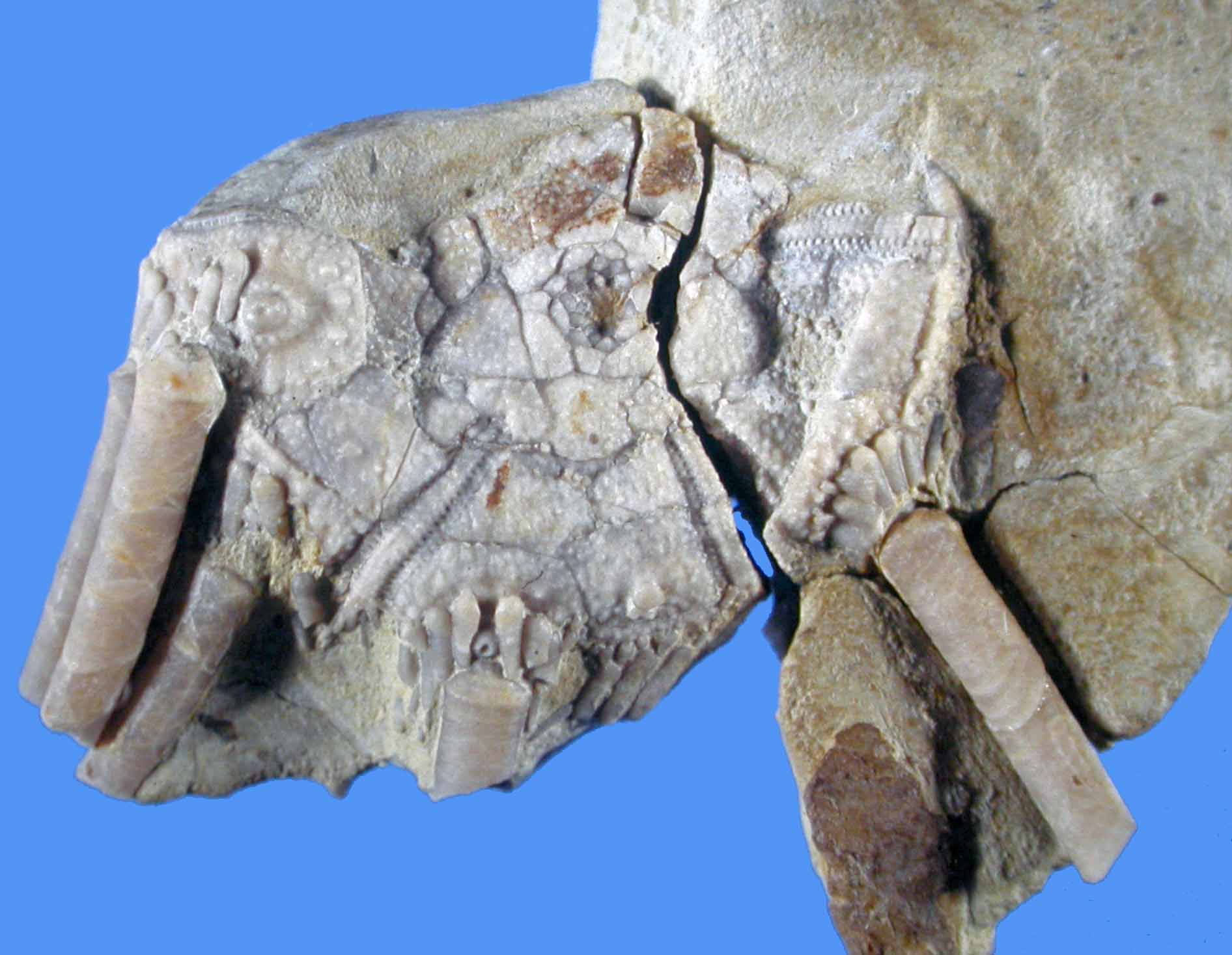 Triadotiaris grandaeva ist mit bis zu 5 cm Coronen-Durchmesser der größte Seeigel der Mittleren Trias. Komplette Stücke mitsamt den Stacheln sind große Seltenheiten, weil die Platten seines Skeletts nicht fest miteinander verbunden waren, sondern sich flexibel überlappen und deshalb nach dem Tod des Tieres schnell auseinanderfielen.
