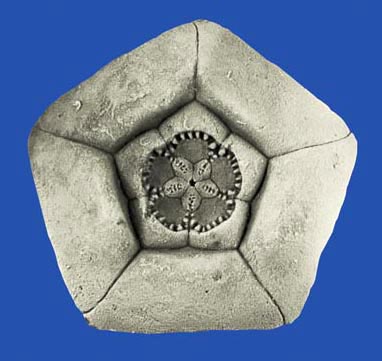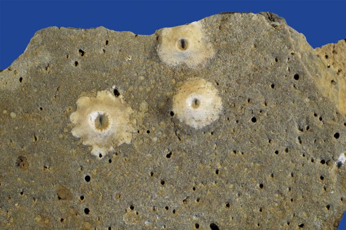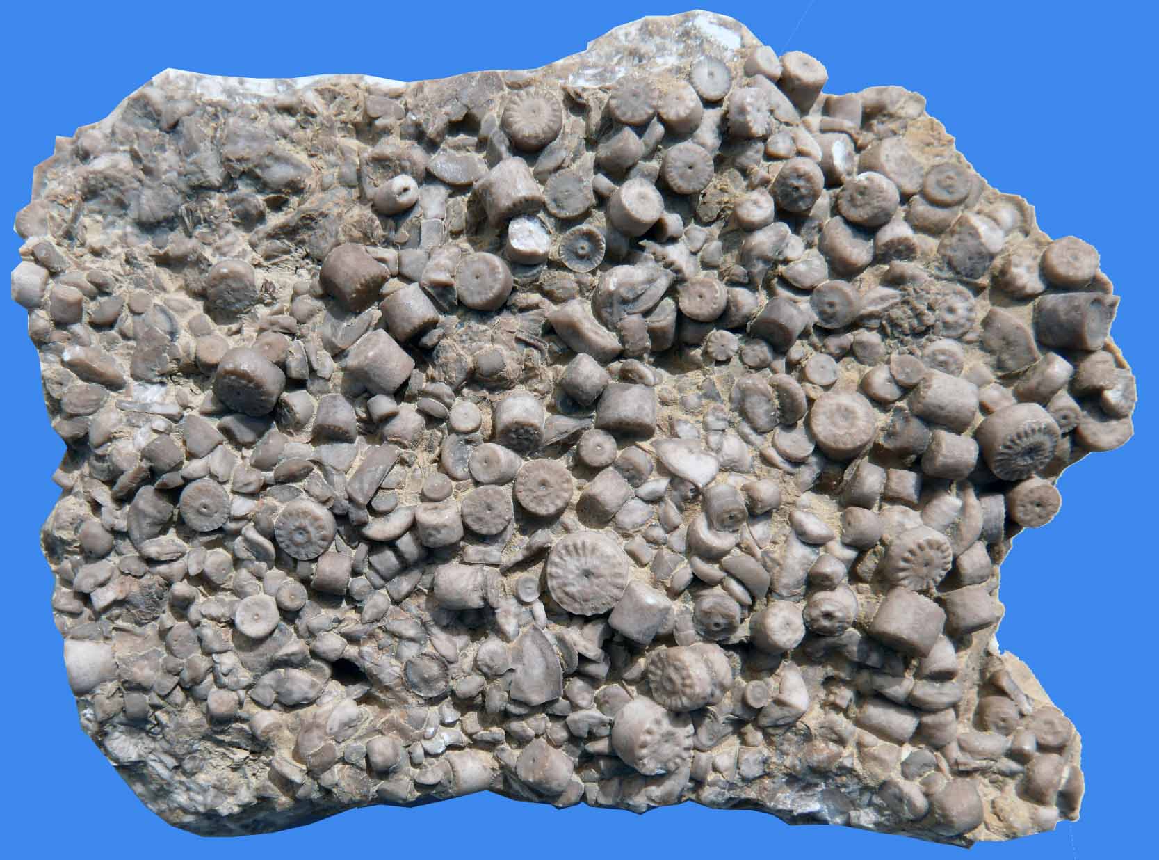 Die fünfeckigen Stielglieder von Holocrinus dubius finden sich konzentriert in manchen Bänken im Unteren Muschelkalk. Der Zerfall eines Holocrinus-Stiels in Abschnitte von meist sieben Gliedern setzte an Sollbruchstellen im Stiel ein. Die kleinen ovalen Elemente stammen von den zerfallenen Stielanhängen, den Cirren.