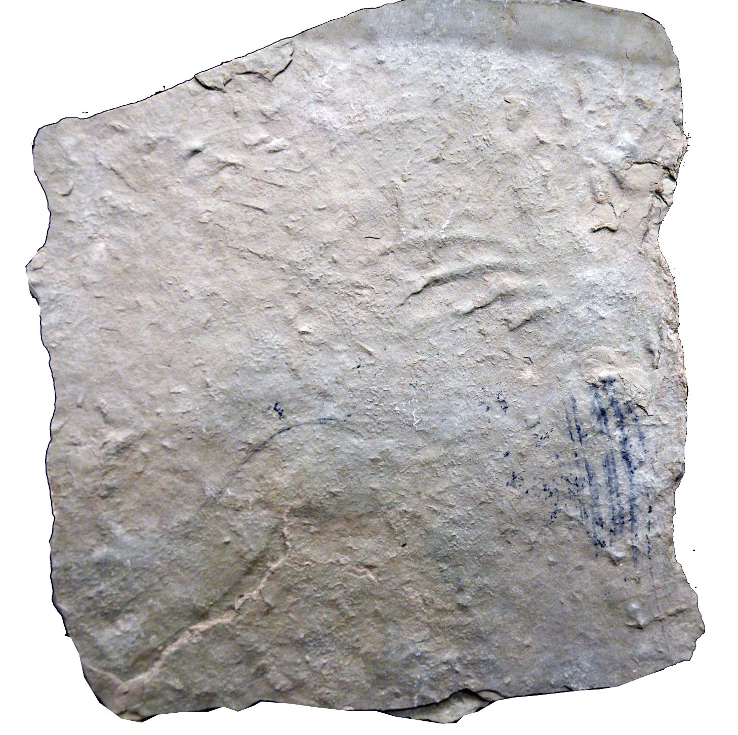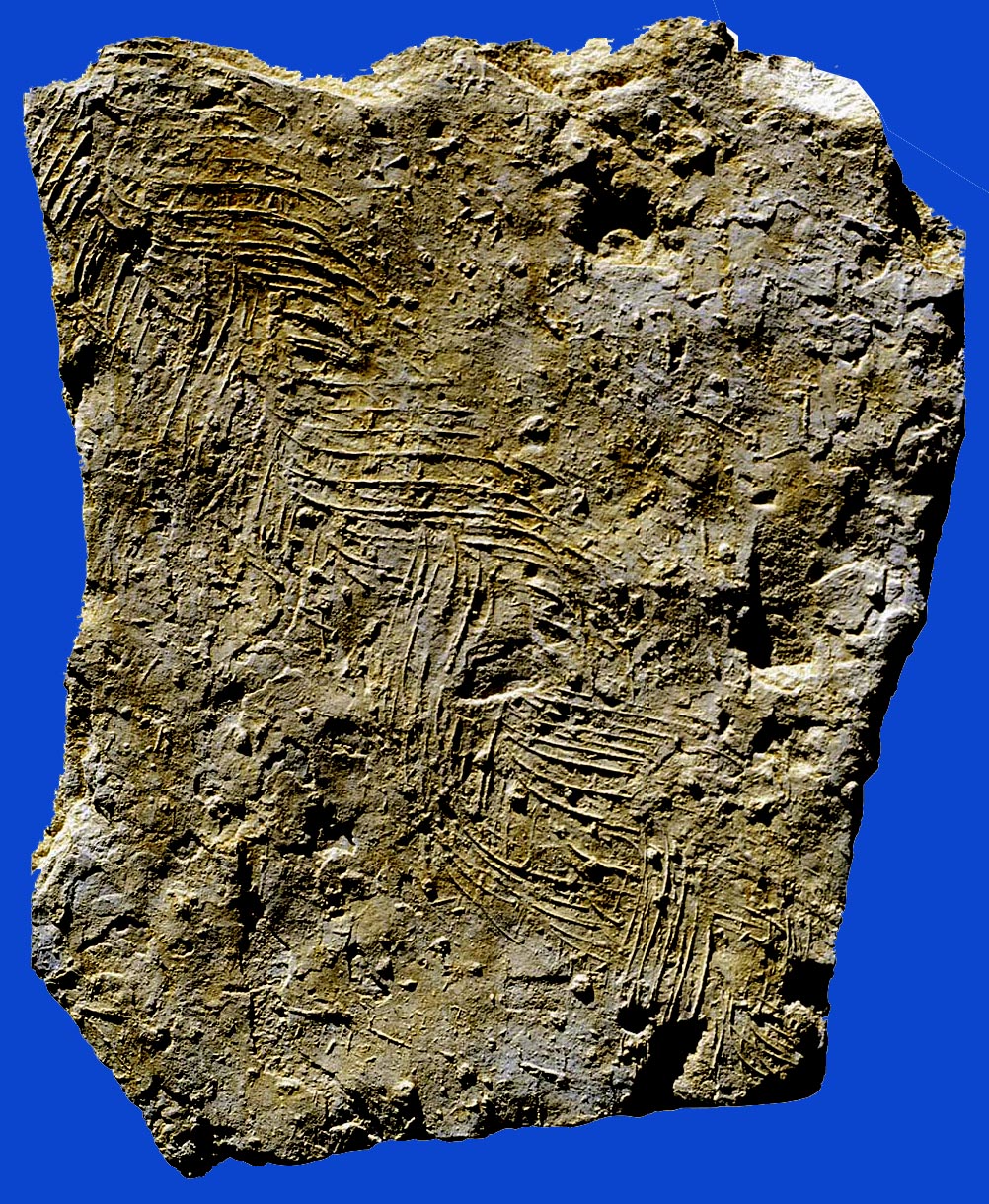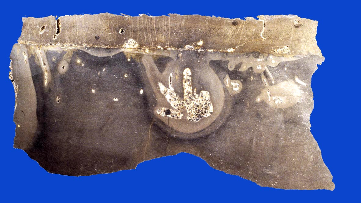 Nachdem der Kalkschlamm am Meeresboden bereits als Festgrund konsolidiert war, haben unbekannte Organismen, vielleicht Eichelwürmer, die Grabspur Balanoglossites angelegt, später dann, als der Boden zum Hartgrund zementiert war, wurde er von oben her angebohrt, wie die dünnen Bohrspuren Trypanites zeigen.