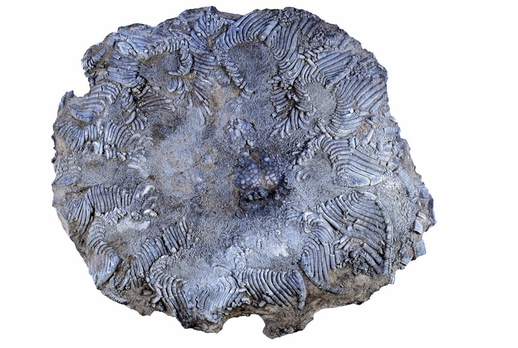 As early as 1546, columnals of the Muschelkalk sea lily Encrinus liliiformis were described by Georgius Agricola and called ‘Trochites’ because of their wheel-like shape. Prior to this, in popular superstition they were interpreted as sun wheels, witches money, or St. Boniface’s pennies. Only in 1719, the Hamburg physician Michael Reinhold Rosinus recognised the relation of the ‘stone lily‘ to asteroids. Until the first living ’sea palm’, dredged from Caribbean waters, arrived at the Natural History Museum of Paris, it took additional decades.