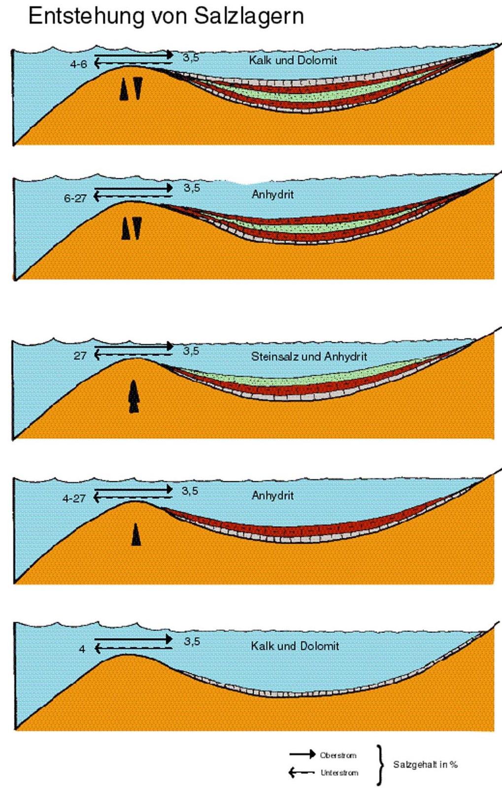 Der Mittlere Muschelkalk ist durch Evaporitgesteine gekennzeichnet, die unter subtropischem Trockenklima aus dem übersalzenen Meerwasser ausgefällt wurden, als der Wasseraustausch zwischen der Tethys und dem Muschelkalkmeer nur noch eingeschränkt funktionierte. Er setzt beckenweit mit der dolomitisch-mergeligen Karlstadt-Formation ein, die unter eingeschränkt flachmarinen Bedingungen abgelagert wurde und artenarme Muschelfaunen, Stromatolithe und Wirbeltierreste enthält. Unter fortschreitender Eindampfung wurde Anhydrit bzw. Gips abgelagert, dann Steinsalz – bei Heilbronn bis 40 m – und schließlich wieder Anhydrit. Diese annähernd fossilleeren Gesteine werden als Heilbronn-Formation zusammengefasst. Darüber folgt die dolomitmergelige Diemel-Formation, während deren Ablagerung es wieder zu ersten Einwanderungen von Flora und Fauna kam. Am westlichen Beckenrand schalten sich rote Tonsteine der Ralingen-Formation ein. Im südlichen Polen hielten sich zunächst noch marine Arten, v.a. Wirtelalgen, in der Diploporendolomit-Formation. Wo die leicht löslichen Evaporitgesteine des Mittleren Muschelkalks nahe der Oberfläche liegen, wurden sie unterirdisch abgelaugt, so dass die Mächtigkeit stark reduziert wurde. Der Mittlere Muschelkalk liefert mit dem Steinsalz (Natriumchlorid) einen wichtigen Rohstoff für die chemische Industrie, und für Streu- und Speisesalz.