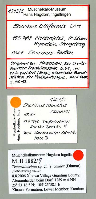 | Nicht-triassische Seelilien | 250 Stücke und Serien |