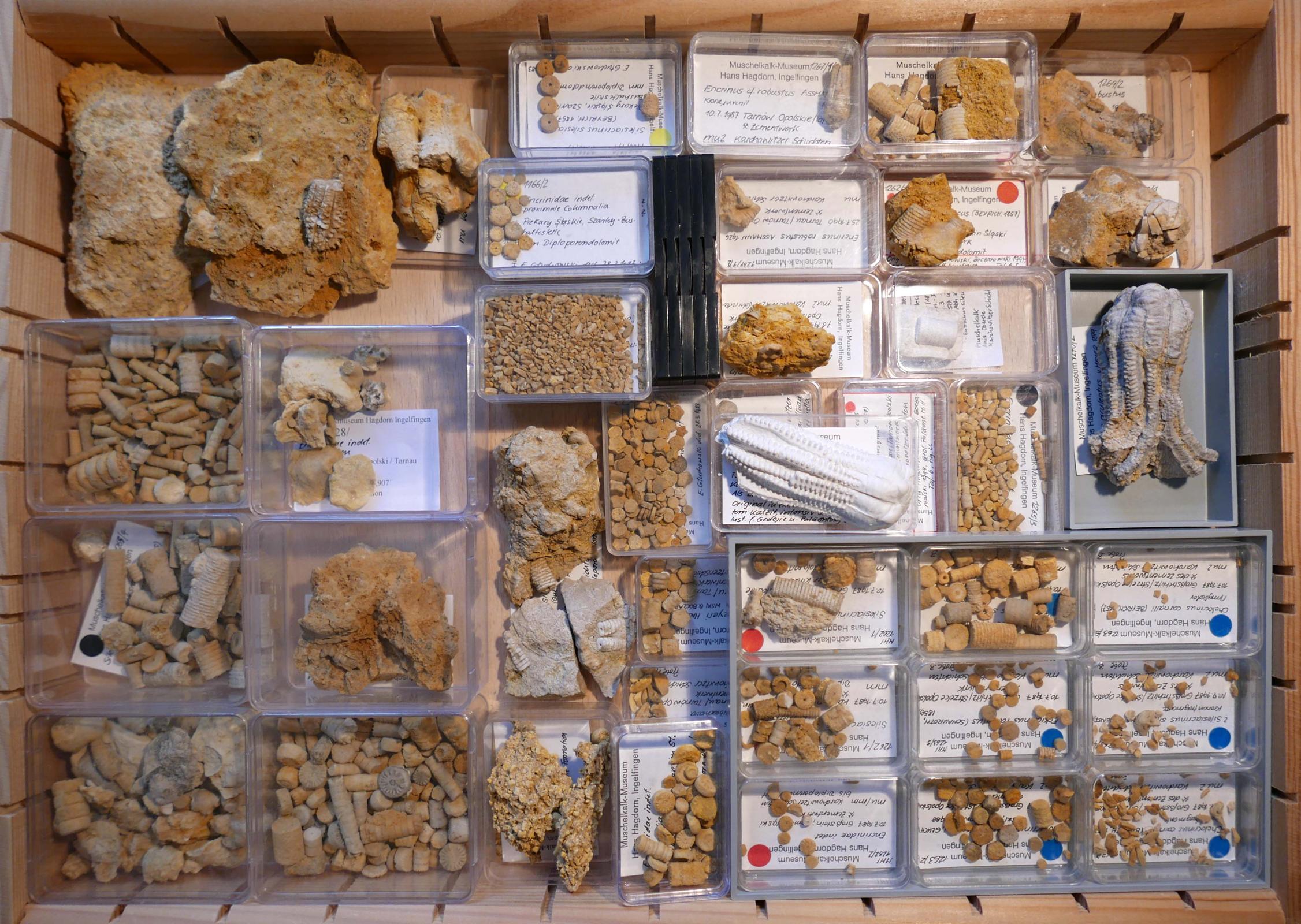 | Spezialsammlungen aus mitteltriassischer Muschelkalkfazies von Südfrankreich, Spanien, Ungarn, Israel, Jordanien, Saudi Arabien | 350 Stücke und Serien |